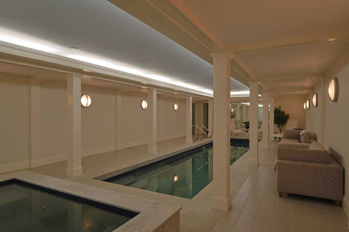 The interior of this estate is a masterpiece of luxury, featuring high-end furnishings, two indoor fireplaces, and state-of-the-art appliances. Indulge in the ultimate relaxation with your private indoor heated pool, hot tub, and steam room, or get active in the fully equipped private gym. Challenge friends and family to a game of tennis on the private clay court or catch a movie in the home theater, complete with a pool table for added entertainment.