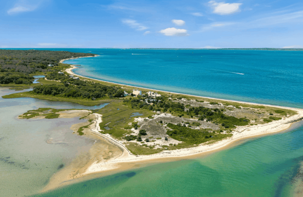 A mile of private shoreline surrounds the estate, including 2,000 feet of sandy beach on the exquisite swimming waters of Vineyard Sound and a broad sweep of sandy beach on Lake Tashmoo.