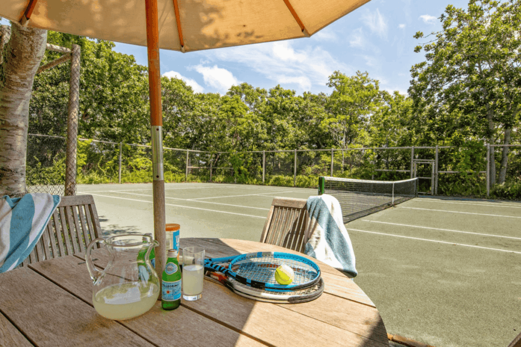 The swimming pool overlooking Vineyard Sound, with views to the mainland beyond, is simply stunning, and a Har-Tru tennis court is discreetly tucked into a private corner of the grounds.
