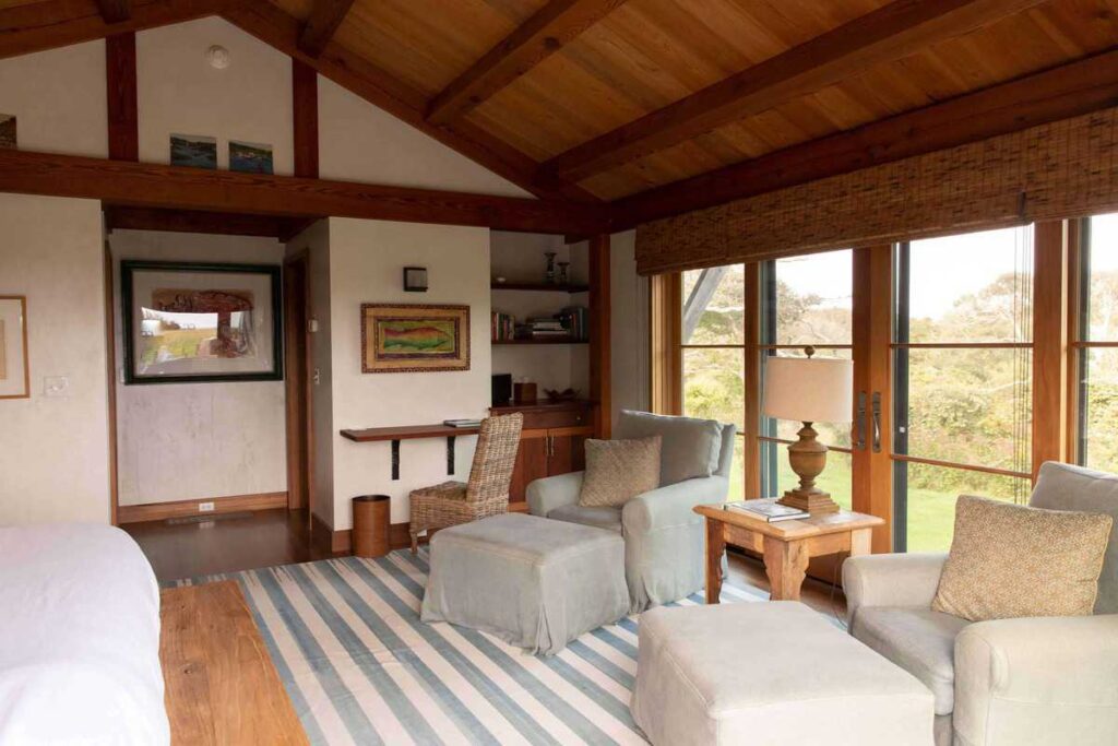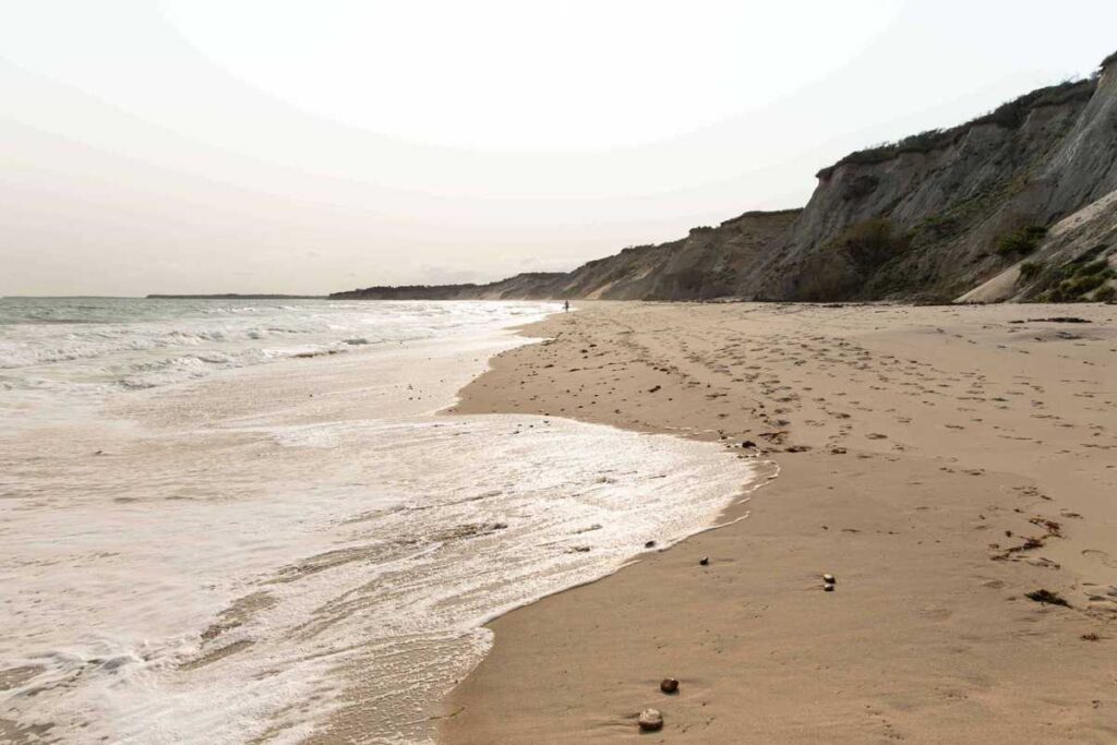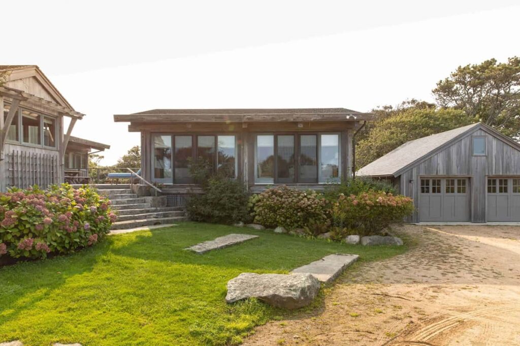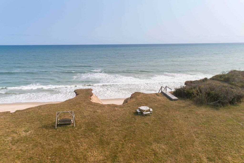 The Bunk house contains two guest rooms, one with just a queen bed and large closet, the other with a queen bed, bunk beds, and a large closet. There is a shared bathroom for the two guest bedrooms and then a master suite with it’s own private bathroom. The breathtaking views over the cliff of the Atlantic Ocean are one of a kind. Climb your own private stairway down to your beach. The expansive grassy yard can host wedding parties or your own private bash. On cool nights sit by the outdoor fireplace. Or if you prefer, the indoor fireplace. Take a shower in one of the 2 outdoor showers. Climb up to the viewing area on top of the house for views as far as Edgartown on a clear day. Soak in the private wooden, cedar hottub.